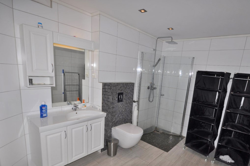 Bad mit Dusche, Waschtisch u. WC