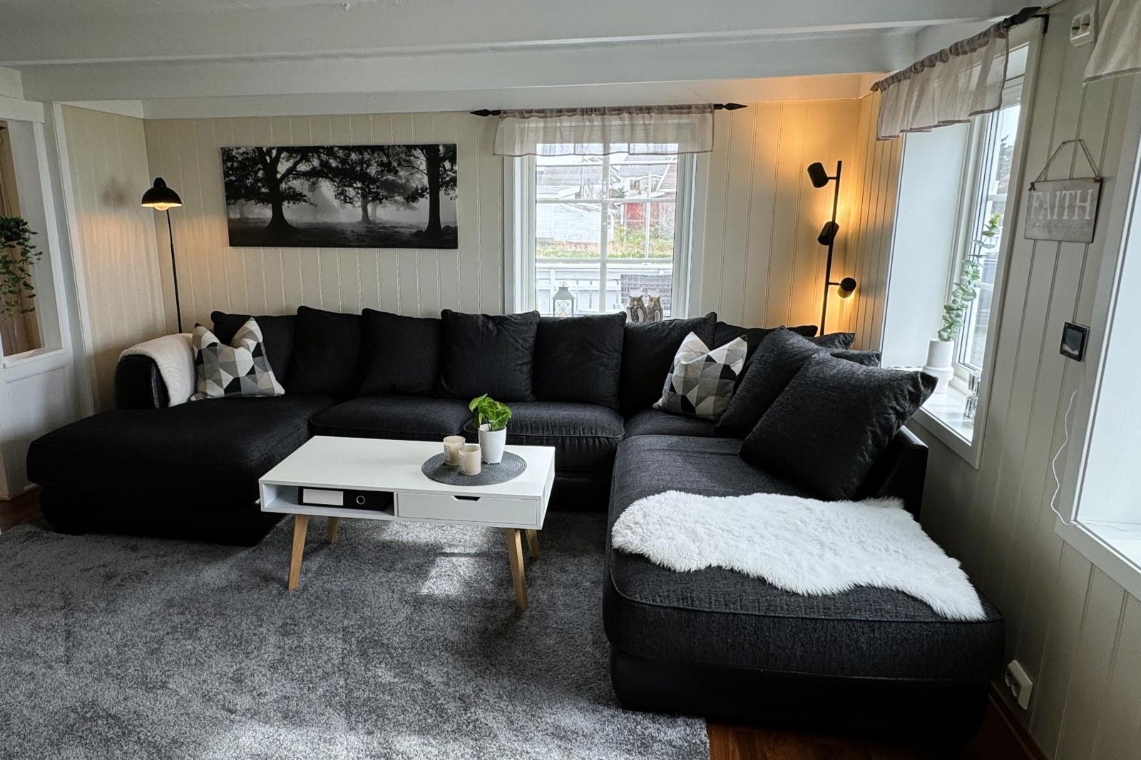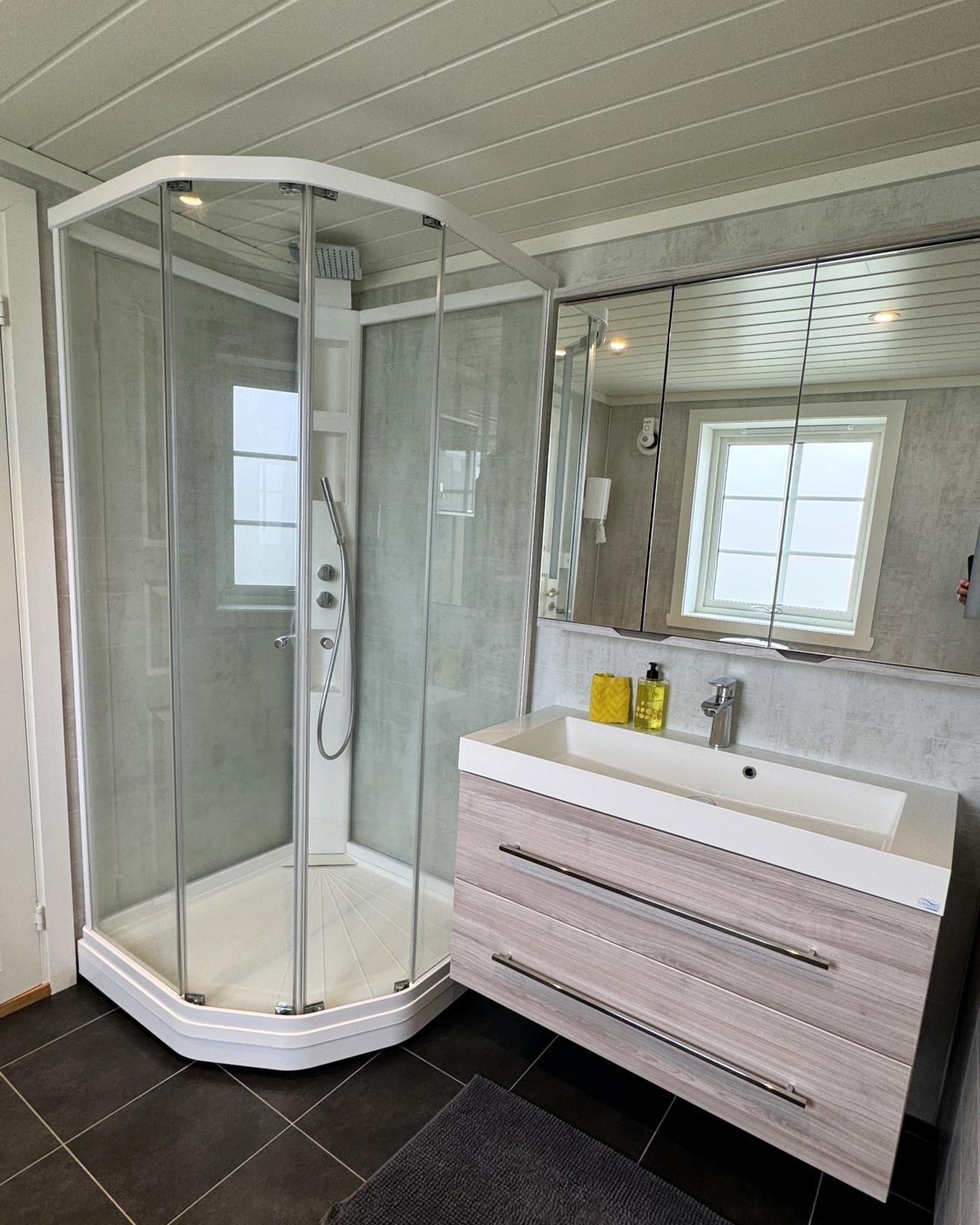 Unser zweistöckiges Haus bietet Platz für insgesamt 11 Personen in 6 Schlafräumen. Mit 2 Bädern plus Gäste-WC, einer gut ausgestatteten Küche, kostenlosem schnellen WLAN und einem Sat-Smart-TV fühlen Sie sich wie zu Hause. 'Havbris' ist besonders gut geeignet für größere Familien und nette Angelgruppen. Fenster mit 180 Grad Meerblick schaffen eine enge Verbindung zwischen Haus und Meer. Genießen Sie Norwegen in vollen Zügen, ohne auf Komfort zu verzichten. Das Interieur ist schlicht und modern zugleich, mit feinen, farbenfrohen Möbeln, die sofort ins Auge fallen. Hier finden Sie die ersehnte Ruhe vom hektischen Alltag, und der Anblick des eigenen Strandabschnittes bei Sonnenuntergang wird Sie jedes Mal aufs Neue verzaubern. Ein Zuhause mit Charme und einem Panoramablick, der Herzen höherschlagen lässt. Stellen Sie sich vor, Sie erwachen morgens und genießen Ihren Kaffee auf einer der Terrassen, während Sie den atemberaubenden Blick über die Meeresbucht vor dem Haus bewundern. 'Havbris' bietet Ihnen nicht nur ein Feriendomizil, sondern ein norwegisches Erlebnis, umgeben von fischreichen Fanggründen.