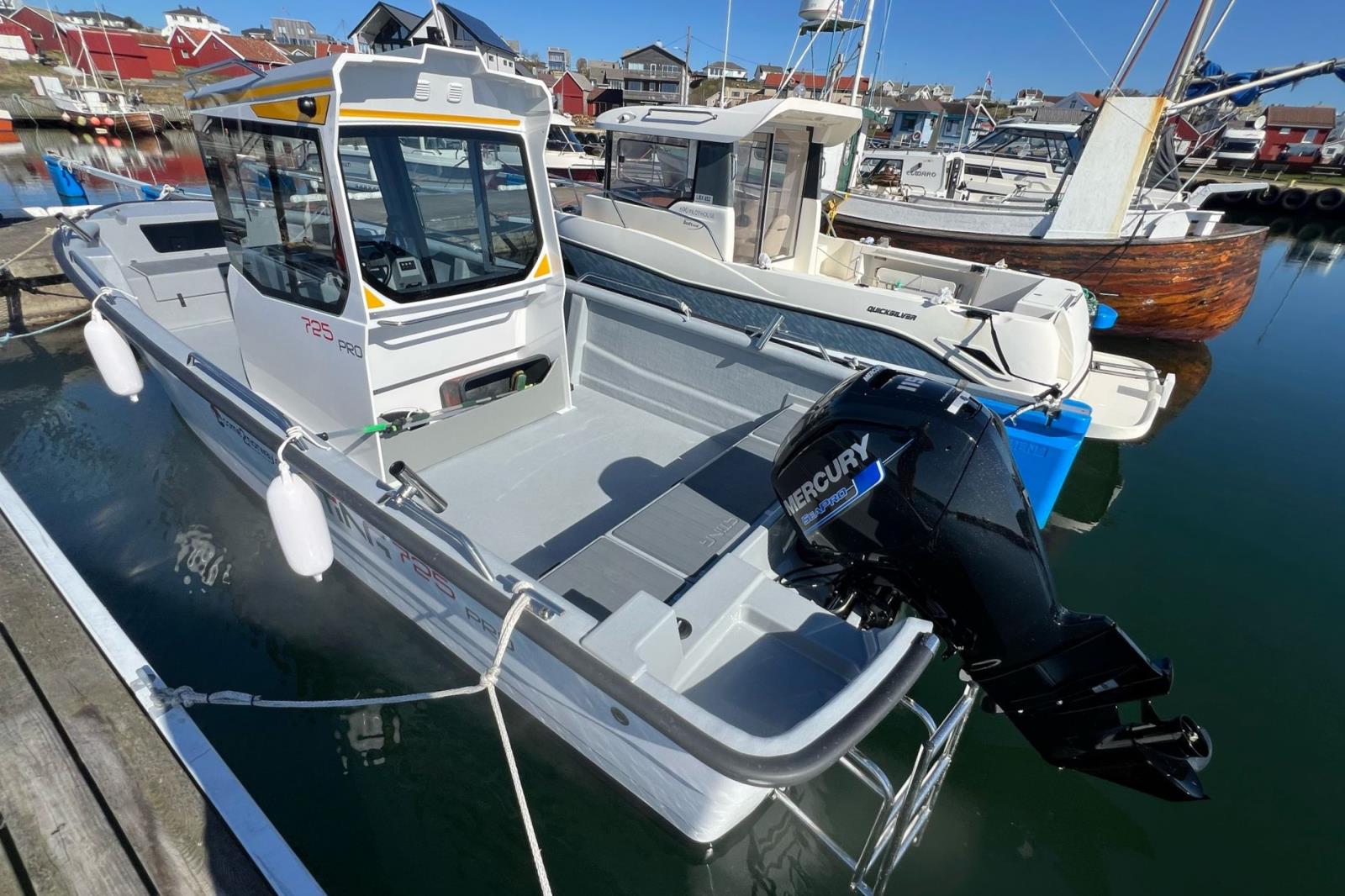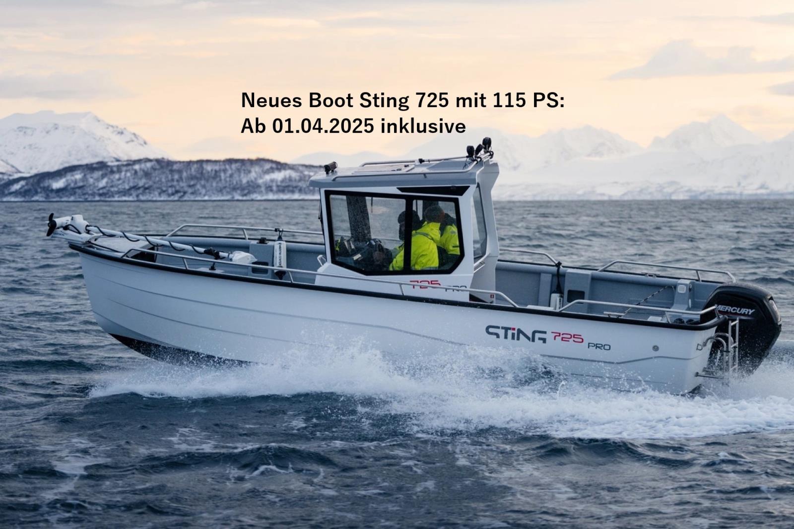 - Länge: 7,25 m, Breite: 2,6 m, Motor: Sea Pro Mercury 115 PS (Modell 2025).