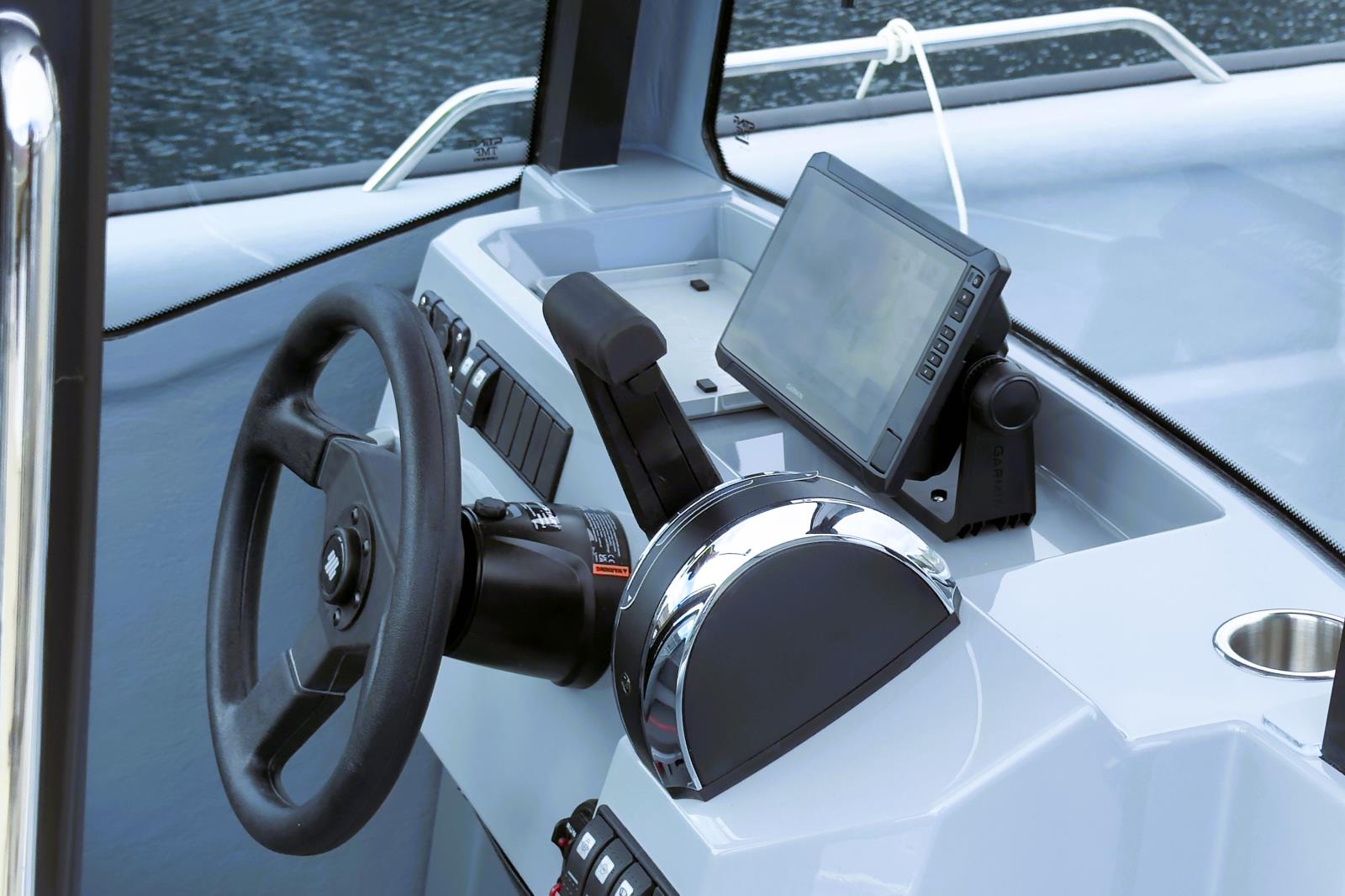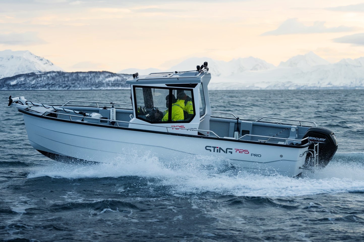 - Länge: 7,25 m, Breite: 2,6 m, Motor: Mercury 115 PS (Modell 2025).