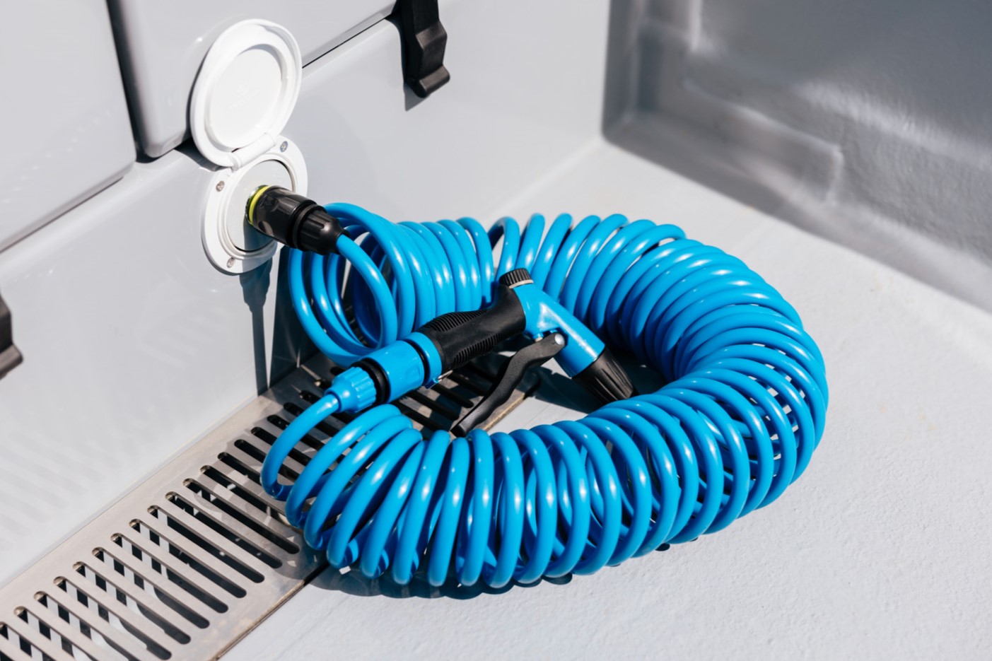 - Hochbelastbare Handläufe und praktischer Zugang an beiden Seiten der Kajüte.