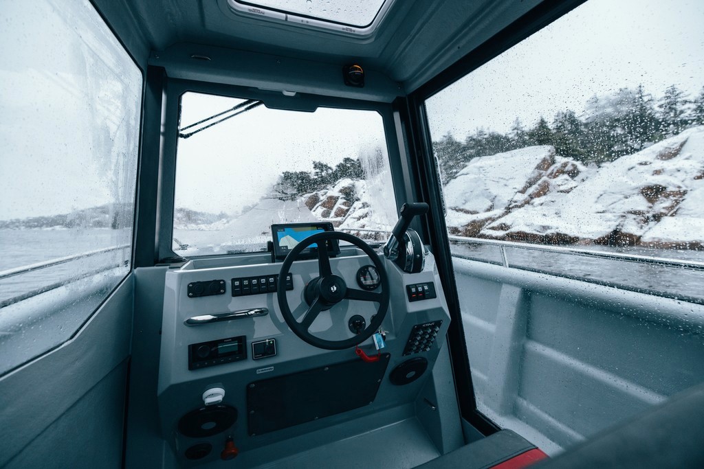 - Große Steuerstandkabine mit Platz für zwei Personen und 360°-Rundumsicht durch große Fenster.