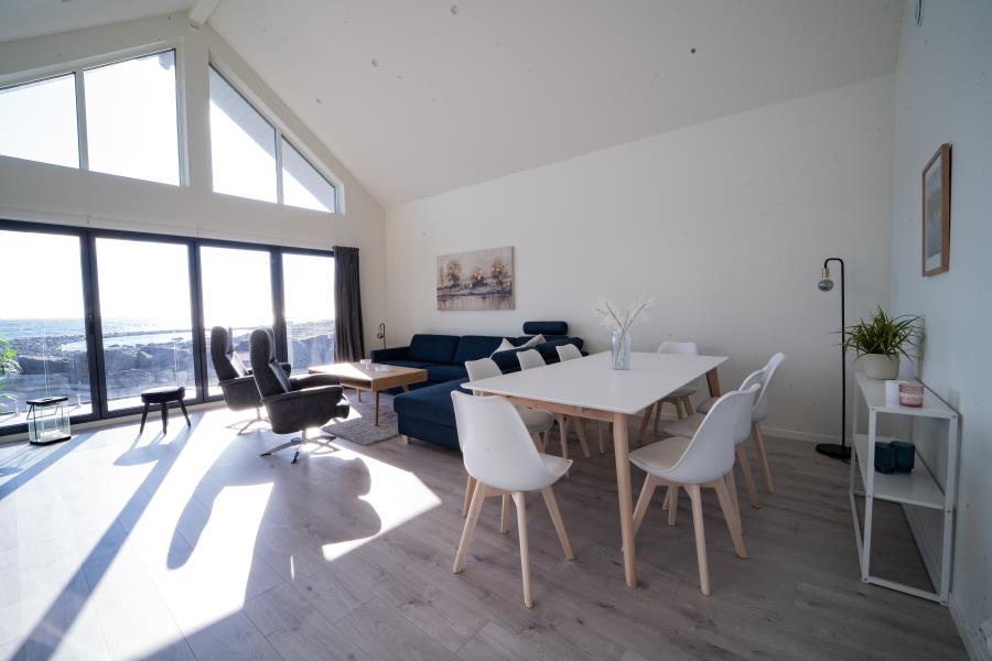 Direkt in der 1. Reihe, am Ufer des fischreichen Listafjorden, inmitten der Meeresbrandung und dem ruhigen Hafen steht unserer großzügiges Ferienhaus 'Lista Maritim 2'. Das Haus wurde in Jahr 2020 fertig gestellt. Erleben Sie hautnah das Rauschen der Brandung, bewundern Sie die fantastischen, blutroten Sonnenuntergänge, erleben Sie tosende Winterstürme, oder die stille und spiegelglatte See direkt aus dem Wohnzimmer. Auf einem der wohl populärsten Grundstücke Borhaugs kam das Haus durch come2norway erstmalig zum 01.07.2020 in die Vermietung. Die Terrasse mit Meerblick, eine tolle Küche, die geschmackvolle Ausstattung, 2 Bäder mit begehbarer Dusche und vieles mehr steht für Sie in Ihrem Traumobjekt bereit. Der freie Blick zur 10 Meter nahen Küste sowie im Hintergrund auf den direkt angrenzenden Hafen mit Bootsplatz garantiert Ihnen rund um die Uhr ein brilliantes Urlaubsvergnügen, welches seines Gleichen sucht. Die großen Panoramafenster liegen zum Süden, von denen Sie das ruhige, spiegelglatte Meer, oder auch je nach Jahreszeit urgewaltige Stürme und eine tosende Brandung hautnah beobachten können. Entspannen Sie sich, denn der Blick und die einmalige Lage direkt am Meer sind ein bemerkenswertes Highlight dieses Objektes.