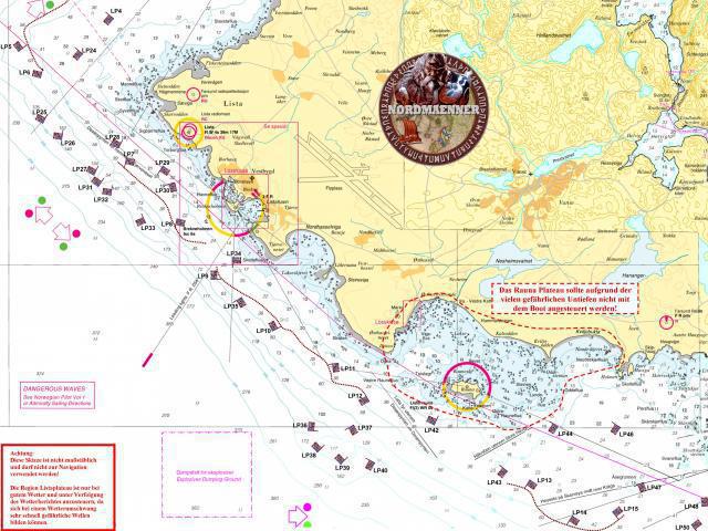 Die Angelplätze sind übersät mit Wracks, die noch vor dem Bau des Leuchtturms um die Jahrhundertwende gesunken sind. Als Geheimtipp gilt ein Wrack bei Lista Fyr in 67 Metern Tiefe, wo sich stattliche Leng, manchmal auch Großdorsch und gute Pollacke tummeln. Am und um den 'Pollackberg' im Listafjorden in 70 Meter Tiefe mit seinem Vorkommen gehen regelmäßig kampfstarke Meeresfische, vor allem Pollack, an den Haken, wie unsere Bilder beschaulich beweisen. Auch direkt südlich des Leuchtturms, ab 45 bis 80 Meter Wassertiefe, an den Abbruchnasen, tummeln sich Leng, Pollack und gute Dorsche.