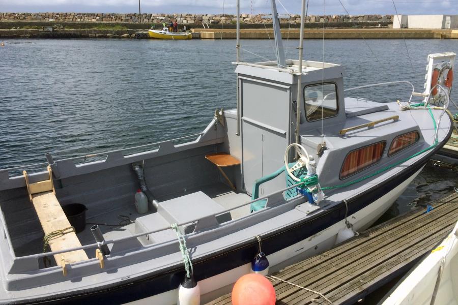 "Tromoy Sjark 2", führerscheinfrei, 23 ft. Dieselkutter, 7,20 lang und 2,50 Meter breit, (25 PS Dieselmotor und Deck neu zur Saison 2025) mit Garmin 72 SV Kartenplotter - Echolot, für 4 Angler zugel., AIS-Tracking zur Standortbestimmung, max Fahrt 6-8 Knoten, für Touristenfischerei mit Fischausfuhrquote registriert.