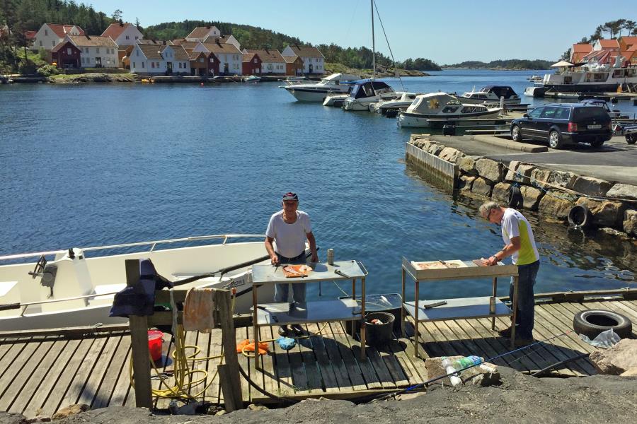 Angeln Sie mit einem kleinen Boot lieber hinter den Schären und fahren nicht sowiet hinaus aufs Meer. Mit einem größeren Boot benötigen Sie vom Anleger aus ca. 15 Minuten Fahrzeit auf das offene Meer. In den Fjorden fangen Sie Meeresfische je nach Jahreszeit, Wetter und Tide.
