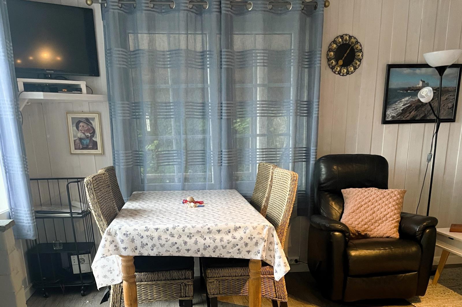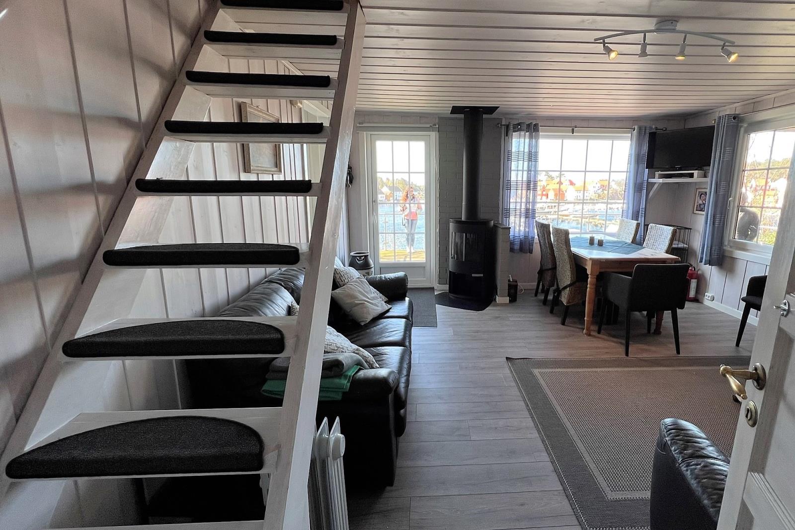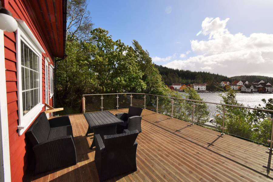 Ferienhaus 'Naversund' liegt in schöner Alleinlage am Wasser, benachbart zur kleinen Ferieninsel Furuholmen (Kommune Lindesnes) am Festland, ein toller Ferienplatz für Anglergruppen oder angelbegeisterte Familien. Das Haus wurde mit neuen Betten im OG und Relax-Sesseln im EG ausgestattet. Auch das Bad wurde renoviert. Das Haus eignet sich für 6 bis max. 8 Personen. 4 Schlafräume sind vorhanden, eine voll ausgestattete Küche, ein Wohnzimmer, sowie 2 Sanitärräume mit jeweils WC u. Dusche. Zum Südwesten befindet sich direkt am Haus eine große, teilüberdachte Terrasse mit Naturgrundstück. Zum Haus gehört ein Steg mit Bootsliegeplatz für das Inklusivboot (unterhalb am Haus), man muss nur über die Straße zu gehen und schon ist man am Boot. Der Parkplatz für Ihr Fahrzeug befindet sich direkt am Haus. Das Ferienhaus wurde in Holzbauweise errichtet und regelmäßig in Stand gesetzt. Die Räumlichkeiten sind im nordischen Sommerhausstil gestaltet. Neben einer voll ausgestatteten Küche mit Geschirrspüler u Küchengeräten, ist ein Sat-TV und ein Kaminofen im Wohnzimmer des Hauses vorhanden. Auch gibt es eine Waschmaschine. Für schnelle Einkäufe fahren Sie mit Ihrem PKW nach Vigeland oder nach Spangereid. Auf Furuholmen, gleich nebenan, gibt es eine Bootstankstelle, sowie ein Kiosk mit unregelmäßigen Öffnungszeiten. Sandbadebuchten und Spielmöglichkeiten für Kinder gibt es wenige Steinwürfe entfernt auf Furuholmen.