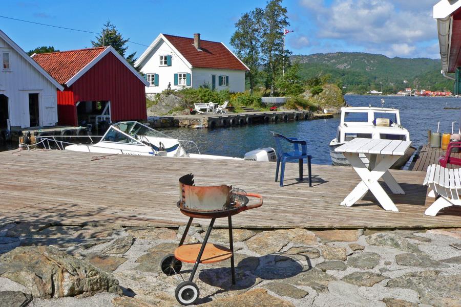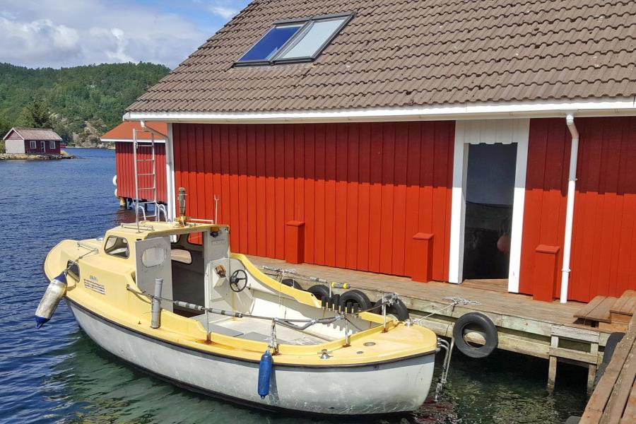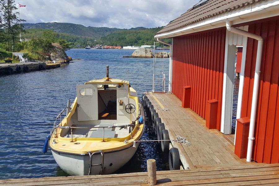 Die Unterkunft liegt neben dem Haus „Ny Blomst“, in dem die Eigentümerfamilie (Alf spricht deutsch) die Sommermonate verbringt – stets hilfsbereit und in Sichtweite. Parkplätze für Ihr Auto stehen am nahegelegenen Festland (Abelnes) zur Verfügung – die Überfahrt zur Insel dauert nur rund 5 Minuten mit dem Boot. Gegenüber, nur wenige Bootsminuten entfernt befindet sich die Insel Andabeløy mit einem kleinen Landhandel, Bootstankstelle und Versorgungsmöglichkeiten. Für größere Einkäufe erreichen Sie Flekkefjord mit dem Auto in ca. 15 Minuten.