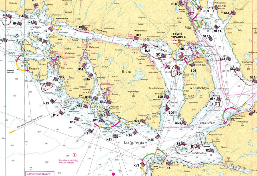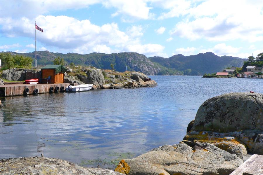 Auf der Strecke gibt es automatische Mautstellen. Bitte melden Sie sich bei autopass.no an und registrieren dort ihr Fahrzeug. Falls Sie ohne Registrierung durch die Autopass-Spuren fahren möchten, erhalten Sie später eine Rechnung über die angefallenen Gebühren. Verlassen sie die „E39“ an der Ausfahrt Flekkefjord und fahren geradeaus durch den Kreisverkehr in Richtung Ortskern. Wenn Sie in den Ortsbereich Flekkefjord kommen, liegen gleich links an der Ortsdurchfahrt zwei Tankstellen, dahinter befinden sich mehrere Einkaufsmärkte (Coop, Spar, Rema 1000, KIWI), die in der Woche bis 21 bzw. 22.00 h geöffnet haben. In Flekkefjord folgen Sie ca. 5 KM immer weiter der Straße 44, am Hinweisschild Abelnes/Hidra biegen sie auf die Straße 469 nach Kvellanstrand / Hidra ab. (Hinweisschild) Hier fahren Sie weiter bis zum zum Ortseingang Abelsnes und biegen links in den Ort ab, folgen dann ca. 150 Meter der Straße und biegen dann rechts auf den Parkplatz des Fähranlegers. Am Fähranleger in Abelnes ist auch der Treffpunkt mit dem Vermieter, der Ihnen die zugewiesenen Parkplätze unmittelbar am Bootsanleger zeigt. Ihr Reisegepäck kann direkt gegenüber der kleinen Ferieninsel, auf der sich ihr Haus befindet, in das Boot umgeladen und zum Haus hinüber gefahren werden. Bedenken Sie bei einer Buchung, dass Risholmen eine autofreie kleine Insel ist. Daher sollten Sie auch wegen der stressfreien Abreise Ihre Heimfahrt mit der Nachmittagsfähre ab Kristiansand organisieren.