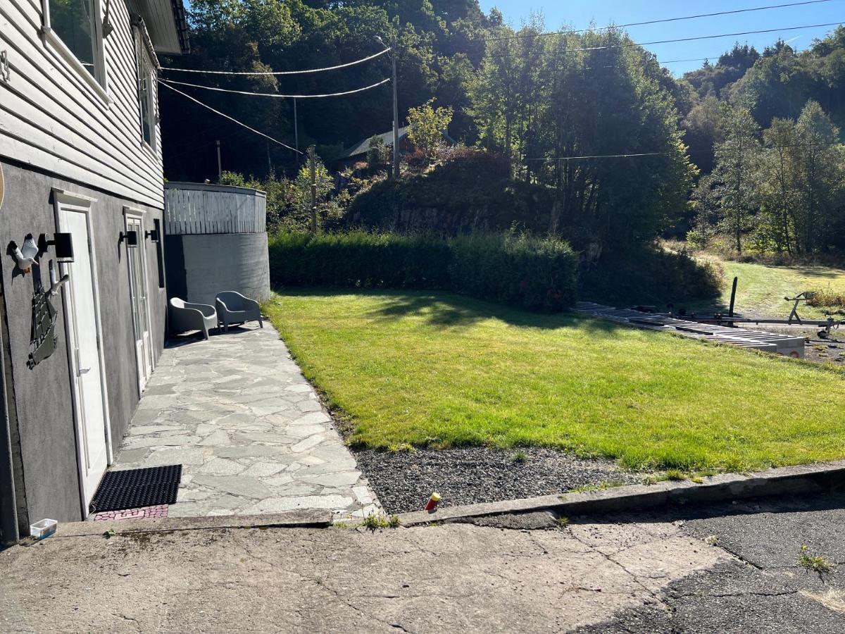 Kohle oder Gasgrill, Gartenmöbeln, Bootsanleger (in 70 Meter am Fjord, direkt am Hidrasund unterhalb des Objektes, Fischreinigungsplatz, Parken direkt am Haus.