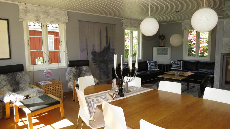 Wir meinen, dass „Sigruns Verden“ der perfekte Ferienplatz für Familien, Angel- und Naturbegeisterte ist, die guten Standard zu schätzen wissen. Erleben sie dieses wunderschöne Feriendomizil zu allen Jahreszeiten, auch den „Indian Summer“ im Herst. An diesem Urlaubsplatz werden Ferienträume war, denn das im Privatbesitz befindliche u. toll ausgestattete Ferienhaus „Sigruns Verden' befindet sich sehr verkehrsberuhigt am Ende eines Weges bei Spind oberhalb vom Fjord auf einem gepflegten Rasen-Naturgrundstück, in sonniger Lage mit Aussicht in Richtung Spindfjorden. Nur 100 Meter geht es den Weg hinunter zum Spindfjorden, dort an der Steganlage liegt das Inklusivboot. Das vollwertig ausgestattete Haus mit 160 m² Wohnfläche liegt in sonniger Lage, mit einer eigenen Zufahrt und 2-3 Parkplätzen. Zur Fjordseite vor dem Haus und auf den Hangflächen hinter dem Haus befinden sich gepflegte Gärten, Terrassen, Sitz- u. Ruheplätze. Grünflächen und Kiefernwälder, auf denen die heimischen Wildpflanzenarten und Speisepilze gedeihen, machen die direkte Umgebung mit der Aussicht auf den Fjord zu einem Paradies. Bademöglichkeiten von der Uferlinie, Fahrten und Angeln mit dem Motorboot auf den Fjorden, sowie Wanderungen in die angrenzenden Wälder machen ihren Urlaub zu einem Erlebnis. Das neben dem Haupthaus befindliche und gut ausgestattete Gästehaus wird ab und an von der Eigentümerin genutzt oder kann von den Gästen des Sigruns Verden zusätzlich mitgebucht werden.