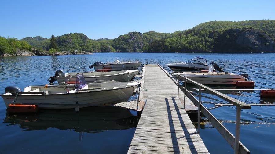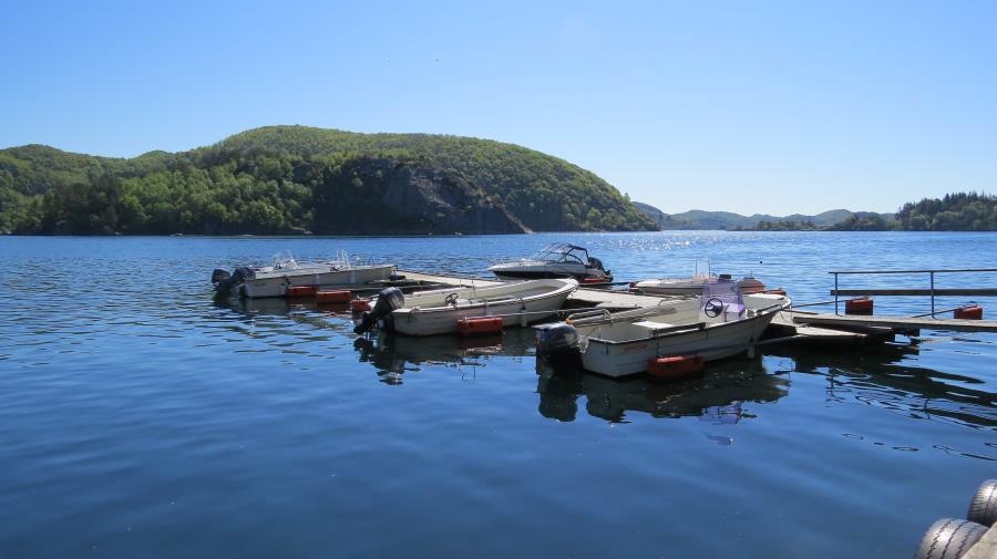 Das Boot liegt an der eigenen Steganlage, ca. 100 Meter unterhalb des Hauses am Spindfjorden. Dort sind auch die Fische zu säubern, keinesfalls am Haus!