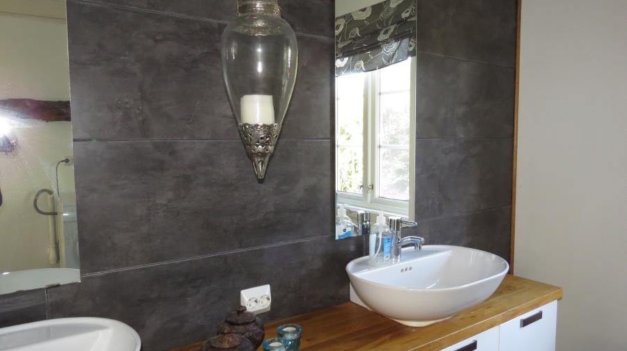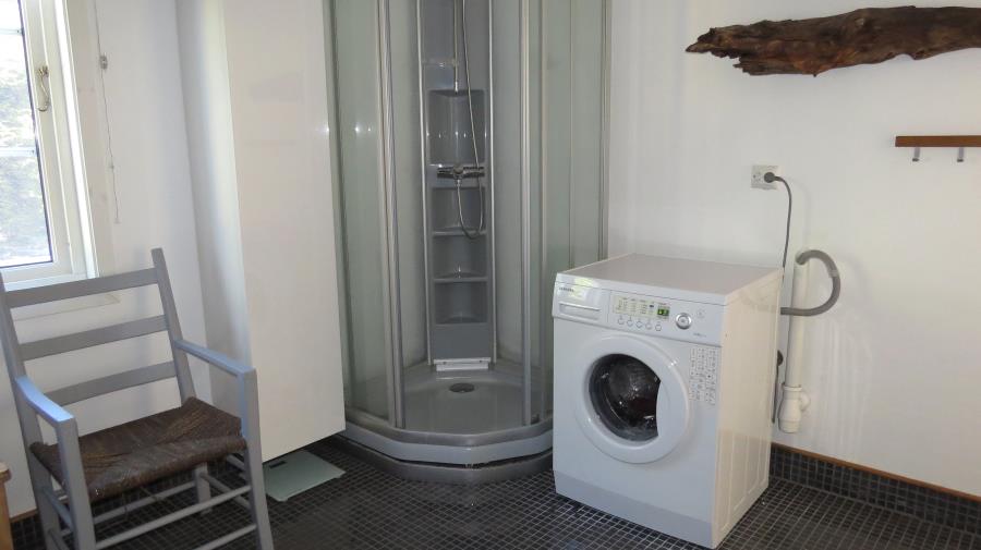 1 hochwertiges Bad (15 m²) mit Dusche, WC und Doppelwaschtisch, Waschmaschine