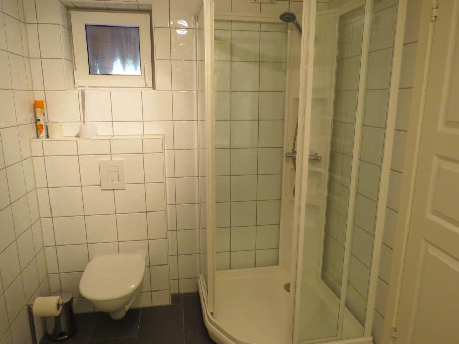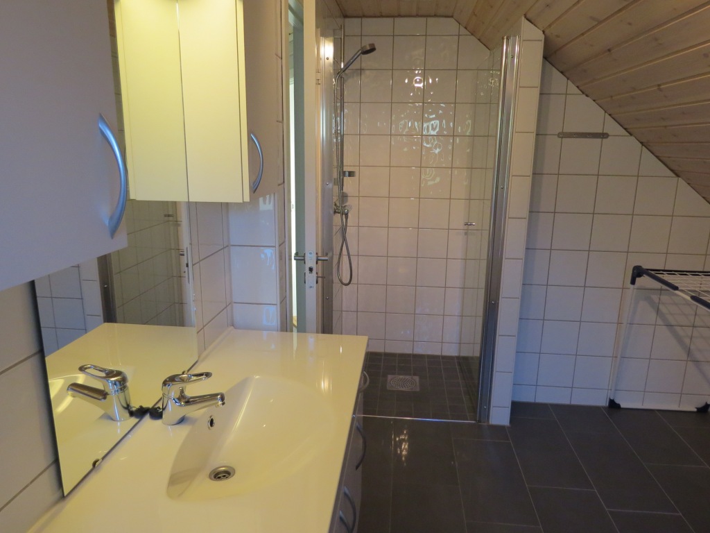 Bad Nr. 1 im EG: geräumiges Bad mit WC, Dusche, Waschtisch, Waschmaschine.