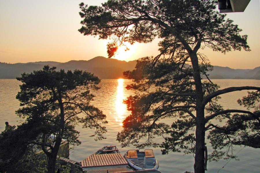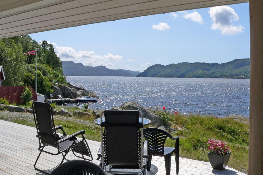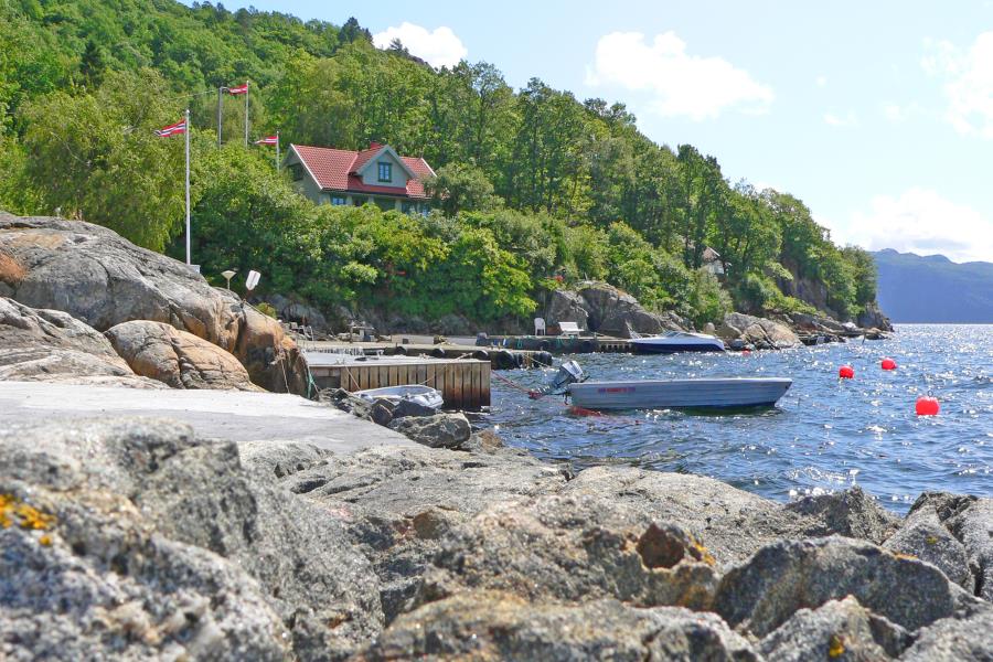 Ferienhaus „Stolsfjorden“ kann nur mit dem Boot erreicht werden u. liegt absolut ruhig und fast abgeschieden in der Fjordwelt von Abelnes bei Flekkefjord, ca. 8 Bootsminuten vom Fährhafen Abelnes entfernt, direkt am Ufer des Stolsfjorden. Angrenzend befinden sich die Fjorde Strandsfjorden bei Andabelöy, der Eids- und Fedafjord, Vollesfjord sowie der Flekkefjord. Vorgelagert im Osten vor der Insel Andabelöy liegt der Listafjorden und dahinter die Insel Hidra. Das in Privatbesitz befindliche Ferienhaus liegt auf einem herrlichen Naturgrundstück und verfügt über eine teilweise überdachte und geräumige Terrasse, sowie über eine eigene, große Boots-Steganlage vor dem Haus. Die Lage der Terrasse ist zum Süd-Westen ausgerichtet. Im Hintergrund des Hauses befindet sich ein kleiner Gebirgszug. In der Nachbarschaft liegen drei weitere Sommerhäuser, die in den Sommermonaten von den norwegischen Eigentümern bewohnt werden. Sie können dieses Objekt nur über dem Wasserweg erreichen, in weniger als 10 Minuten mit dem Boot von Abelnes aus. Hier in Abelnes befindet sich auch der zum Haus gehörige PKW-Stellplatz. Für schnelle und kleinere Einkäufe bietet sich der Landhandel auf der Insel Andabeloy an, den Sie ebenfalls in 10 Minuten mit dem Boot erreichen können. Wir empfehlen Ihnen unbedingt einen Bootsausflug in die „Holländerstadt“ Flekkefjord . Hier können Sie am Gästehafen anlegen und in den angrenzenden Einkaufszentren nach Herzenslust die Vorräte auffüllen. Die Fahrzeit zum Hafen Flekkefjord beträgt ca. 15-20 Minuten. Auch mit dem PKW von Abelnes nach Flekkefjord benötigt man 15 Minuten. Auf Andabeloya beim Landhandel Oyna gibt es zudem eine Boots-Tankstelle für Diesel und Benzin / 24 Std., nur EC-Karte oder Visa mit PIN.