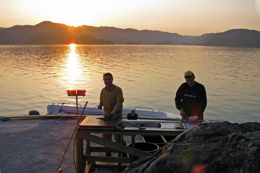 Sollte die Fischreinigung auf dem Boot oder auf einem entsprechendem Filetiertisch auf dem Bootsanleger erfolgen, entsorgen Sie bitte die Fischabfälle auf See, und nicht im Hafenbecken. Decken Sie Fischabfälle stets ab (Möwen).