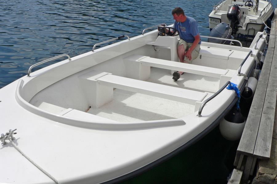 Dieses stabile und seetüchtige Boot ist 18 ft (5,30 m) lang, 2,20m breit und hat einen sparsamen 4-Takt Motor mit 40 PS. Zudem verfügt das Boot über einen Steuerstand mit Kartenplotter und Echolot. Vermietung nur Wochenweise in der Region Hidra.