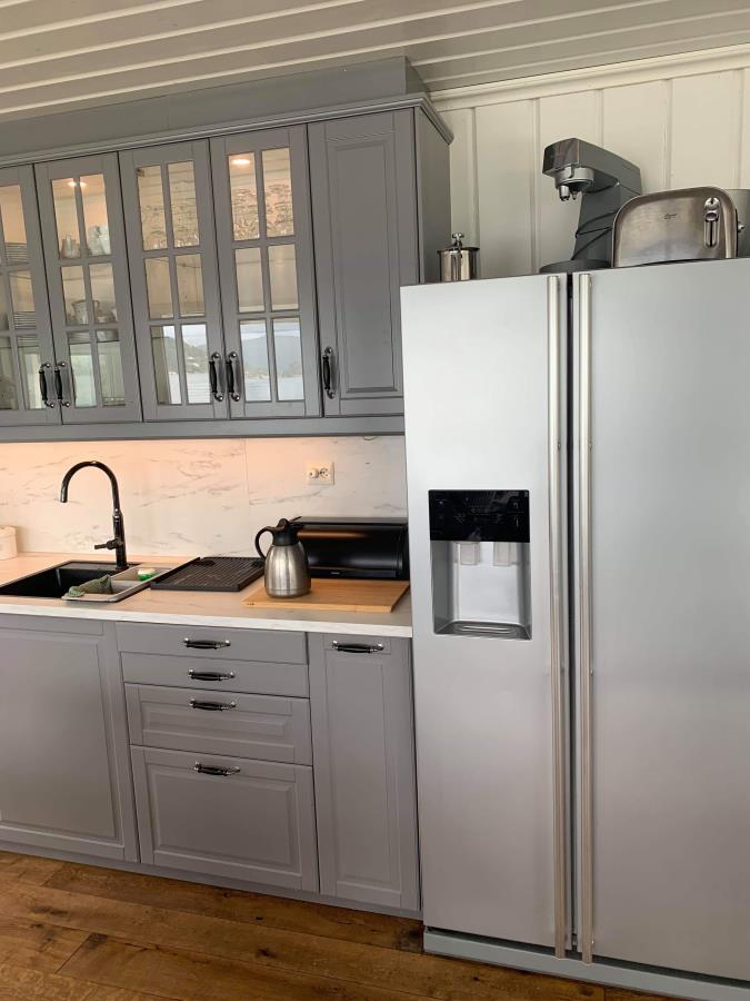 Dieses charmante Ferienhaus ist nur über den Wasserweg zu erreichen. Hier erwartet Sie Ruhe – fernab von Straßenlärm oder Massentourismus. Nur vorbeifahrende Boote unterbrechen die Stille. In wenigen Minuten erreichen Sie das Haus mit dem Boot und tauchen in eine Welt der Entspannung und Naturverbundenheit ein. Die friedliche Lage direkt am Fjord ist ideal für alle, die auch auf moderne Annehmlichkeiten nicht verzichten wollen. Trotz der abgelegenen Lage sind Sie nicht isoliert. Von Abelnes oder Flekkefjord aus erreichen Sie „Haus Stolsfjorden“ in nur 10-15 Minuten mit dem Boot. Die Insel Andabeløy, auf der sich ein kleiner Lebensmittelhandel und eine Boots-Tankstelle befinden, liegt ebenfalls nur eine kurze Bootsfahrt entfernt. Sie haben also alles Nötige in Reichweite, während Sie gleichzeitig die Natur genießen können.