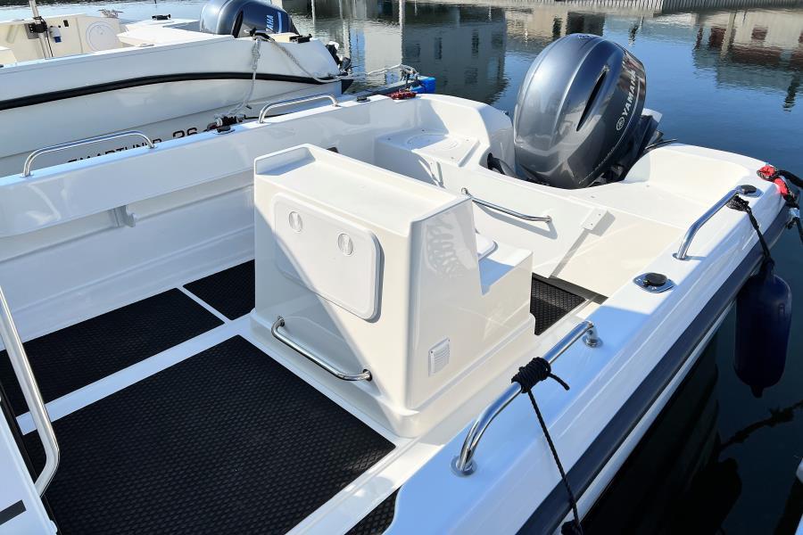 Motor: Yamaha Außenborder 150 PS mit elektronischem Schalt- und Gassystem („Drive by Wire“).