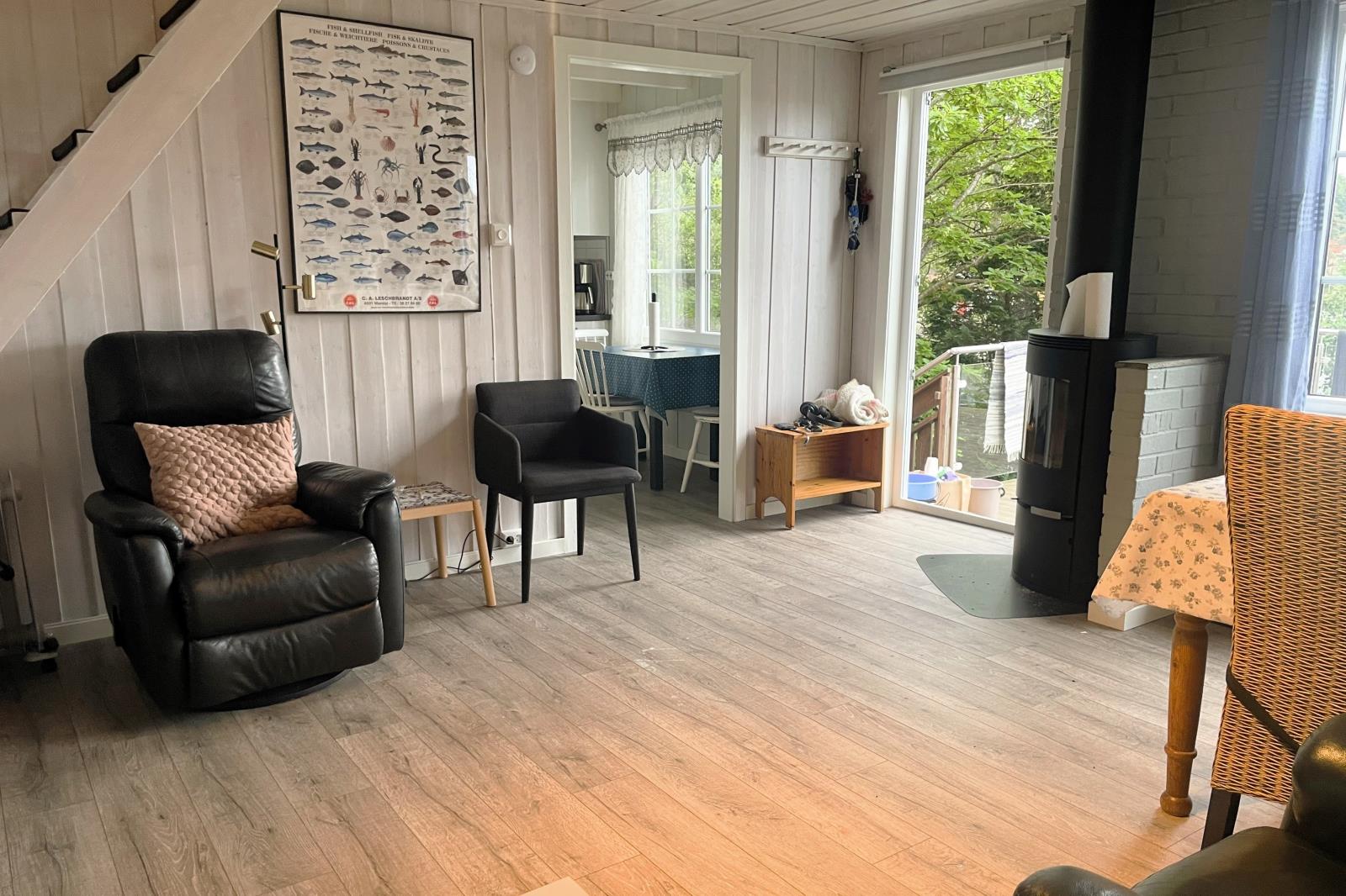 Ferienhaus 'Naversund' liegt in schöner Alleinlage am Wasser, benachbart zur kleinen Ferieninsel Furuholmen (Kommune Lindesnes) am Festland, ein toller Ferienplatz für Anglergruppen oder angelbegeisterte Familien. Das Haus wurde mit neuen Betten im OG und Relax-Sesseln im EG ausgestattet. Auch das Bad wurde renoviert. Das Haus eignet sich für 6 bis max. 8 Personen. 4 Schlafräume sind vorhanden, eine voll ausgestattete Küche, ein Wohnzimmer, sowie 2 Sanitärräume mit jeweils WC u. Dusche. Zum Südwesten befindet sich direkt am Haus eine große, teilüberdachte Terrasse mit Naturgrundstück. Zum Haus gehört ein Steg mit Bootsliegeplatz für das Inklusivboot (unterhalb am Haus), man muss nur über die Straße zu gehen und schon ist man am Boot. Der Parkplatz für Ihr Fahrzeug befindet sich direkt am Haus. Das Ferienhaus wurde in Holzbauweise errichtet und regelmäßig in Stand gesetzt. Die Räumlichkeiten sind im nordischen Sommerhausstil gestaltet. Neben einer voll ausgestatteten Küche mit Geschirrspüler u Küchengeräten, ist ein Sat-TV und ein Kaminofen im Wohnzimmer des Hauses vorhanden. Auch gibt es eine Waschmaschine. Für schnelle Einkäufe fahren Sie mit Ihrem PKW nach Vigeland oder nach Spangereid. Auf Furuholmen, gleich nebenan, gibt es eine Bootstankstelle, sowie ein Kiosk mit unregelmäßigen Öffnungszeiten. Sandbadebuchten und Spielmöglichkeiten für Kinder gibt es wenige Steinwürfe entfernt auf Furuholmen.