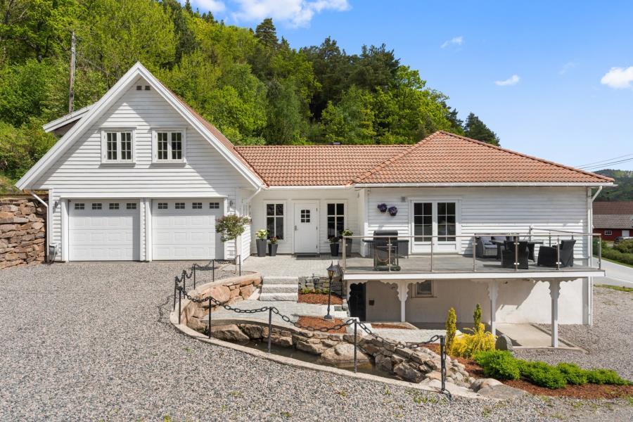 Freuen Sie sich auf die gut ausgestattete, offene Küche mit Side by Side Kühlung und einem großen, offenen Wohnbereich. Ein Kaminofen in der großen Eingangshalle sorgt für behagliche Wärme. Im EG liegt das Gäste-WC und im OG ein Masterbad mit Doppelwaschtisch, WC u. Dusche u. Ankleide. Auch gibt es einen extra Hauswirtschaftsraum mit Waschmaschine, Trockner und Gefriertruhe. Zum Süden befindet sich direkt am Haus eine große Terrasse mit einem Steingarten, angrenzend eine Garage. Zum Haus gehört ein Bootsliegeplatz für das Inklusivboot (ca. 50 Meter vom Haus), man muss nur über die Straße zu gehen und schon ist man am Boot. Sandbadebuchten und Spielmöglichkeiten für Kinder gibt es wenige Steinwürfe entfernt, z. B. auf Furuholmen oder am Audnastrand. Auf Furuholmen, gleich in der Nähe gibt es in der Saison eine Bootstankstelle, sowie ein Sommerkiosk mit unregelmäßigen Öffnungszeiten. Hinweis: Im Parterre-Bereich des Hauses befindet sich eine Einliegerwohnung, die an nette Touristen vermietet wird.
