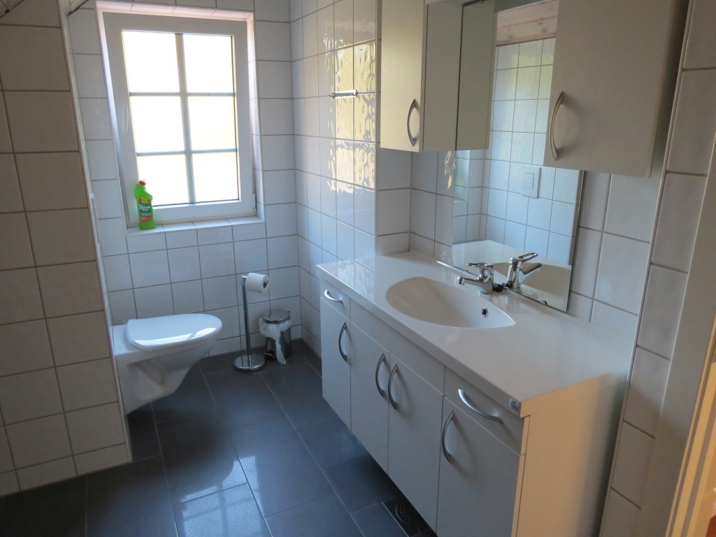 Bad Nr. 1 im EG: geräumiges Bad mit WC, Dusche, Waschtisch, Waschmaschine.